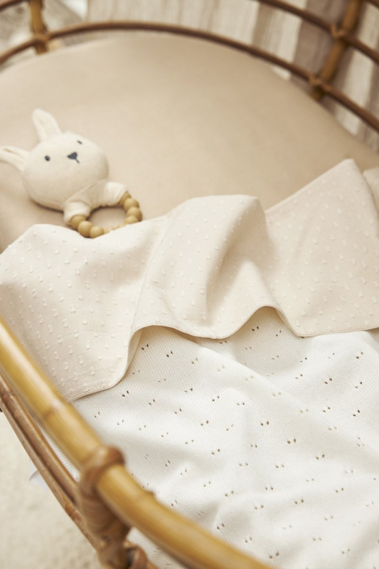 Voor je baby is er niets fijner dan lekker in bed gestopt te worden onder deze Meyco Baby bamboe deken Ajour. Het subtiele Ajour patroon voegt een romantische en luxe uitstraling toe aan de deken.