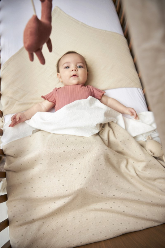 Voor je baby is er niets fijner dan lekker in bed gestopt te worden onder deze Meyco Baby bamboe deken Ajour. Het subtiele Ajour patroon voegt een romantische en luxe uitstraling toe aan de deken.
